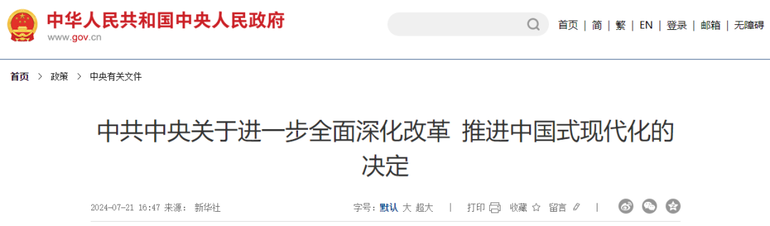 7月21日,《中共中央關(guān)于進一步全面深化改革 推進中國式現(xiàn)代化的決定》發(fā)布。