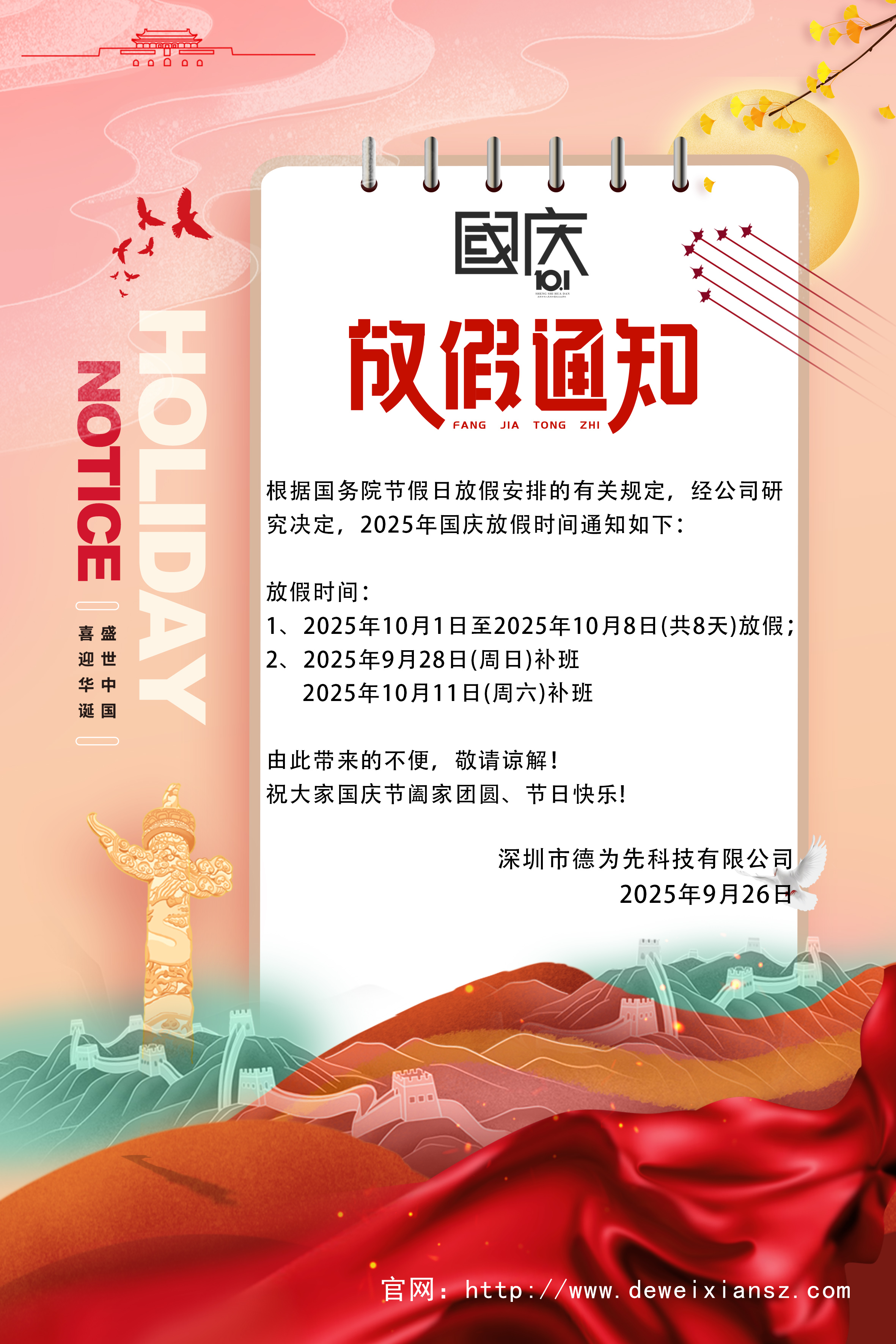歡度國慶,共迎華誕——關(guān)于我司2025年國慶放假通知!
